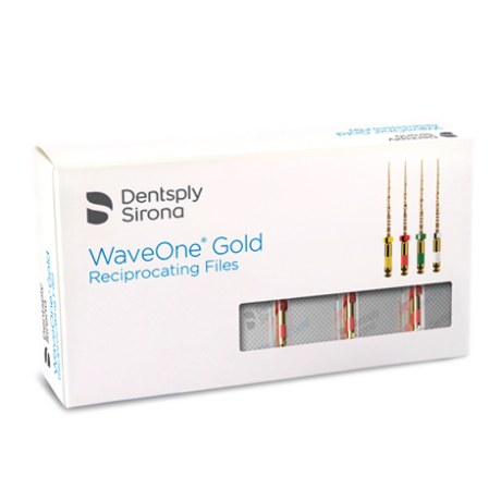 Limas para endodoncia. Fabricadas con metalurgia avanzada, WaveOne® es la próxima generación de rendimiento de movimiento alterno de Dentsply Sirona. El sistema mejorado se basa en el revolucionario concepto WaveOne® de una sola lima, técnica de conformado de movimiento alterno que utiliza ángulos desiguales hacia la derecha y hacia la izquierda para aumentar la seguridad y la velocidad en lugar de utilizar varias limas rotatorias para lograr la misma forma final.